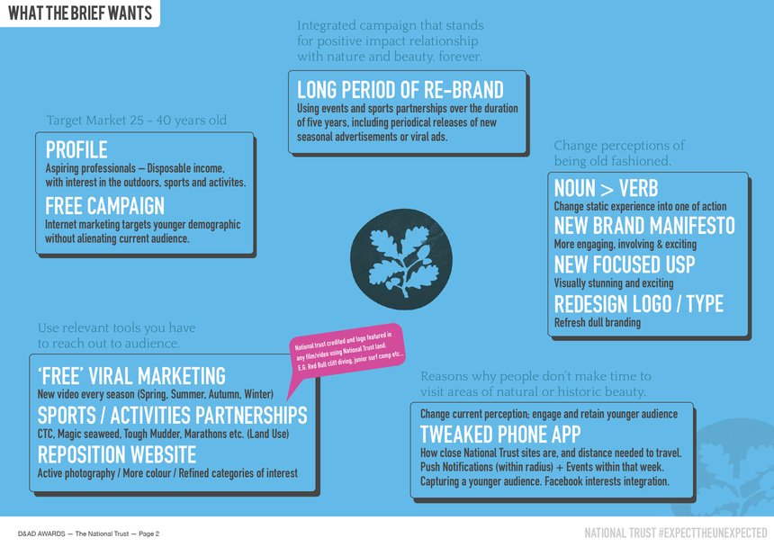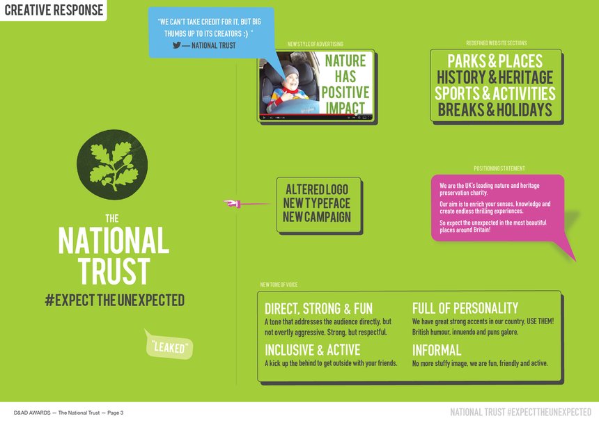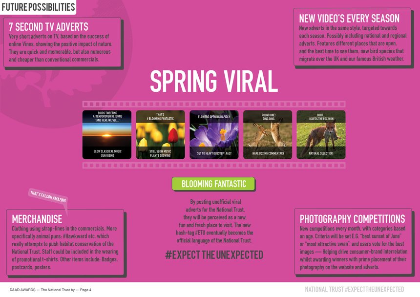 #ExpectTheUnexpected CampaignTo demonstrate our extreme, modern and risqué idea, and its potential to reach 25 to 40 year olds, we endeavoured to release an online video showing how the trust could be positively perceived with an unexpected tone of voice and aesthetic. The “leaked” video ended up going semi-viral with debate over its authenticity and it received extensive amounts of positive feedback on websites such as Twitter, The Telegraph, BBC Travel, Daily Star, The Drum, PR Examples and Liveleak etc. This interest in our campaign, along with its refreshing aesthetic and unexpected tone of voice, has real potential for the National Trust.