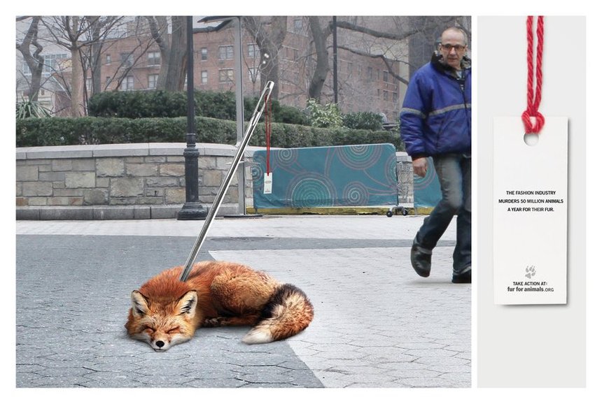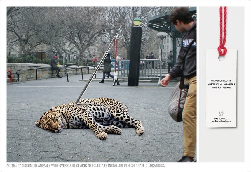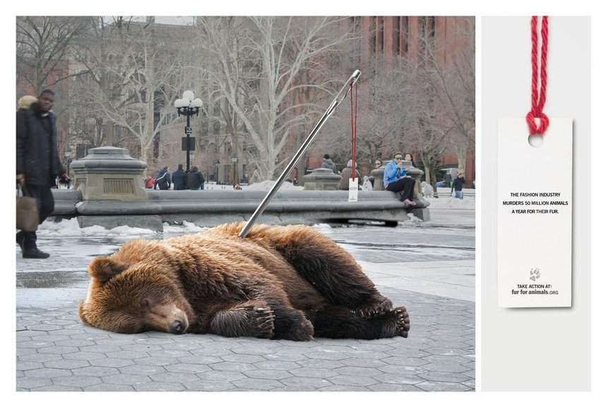 For the 2017 Respect for Animals New Blood brief, this team came up with a smart idea to hit city dwellers with a message – buying fur kills animals. With most people still clueless about how many animals are killed each year for the fur industry, they reckoned it would take a shock to the system to make them pay attention. In a display of tragic symbolism, real taxidermy animals would be installed in high-traffic spots, pierced by spear-like oversized needles and thread.