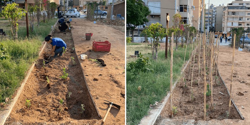 Using the Miyawaki technique of afforestation, the trees and shrubs are biodiverse and sequester 30 times more CO2 and pollution. “We are providing an opportunity for [Lebanese] municipalities and their community to partake in reclaiming degraded urban spaces — literally ripping out concrete and asphalt — and turning them into thriving ecosystems,” Dada says. "This is providing a haven for wildlife, helping in reducing temperatures in the city, and allowing for stormwater to infiltrate the ground and recharge aquifers"